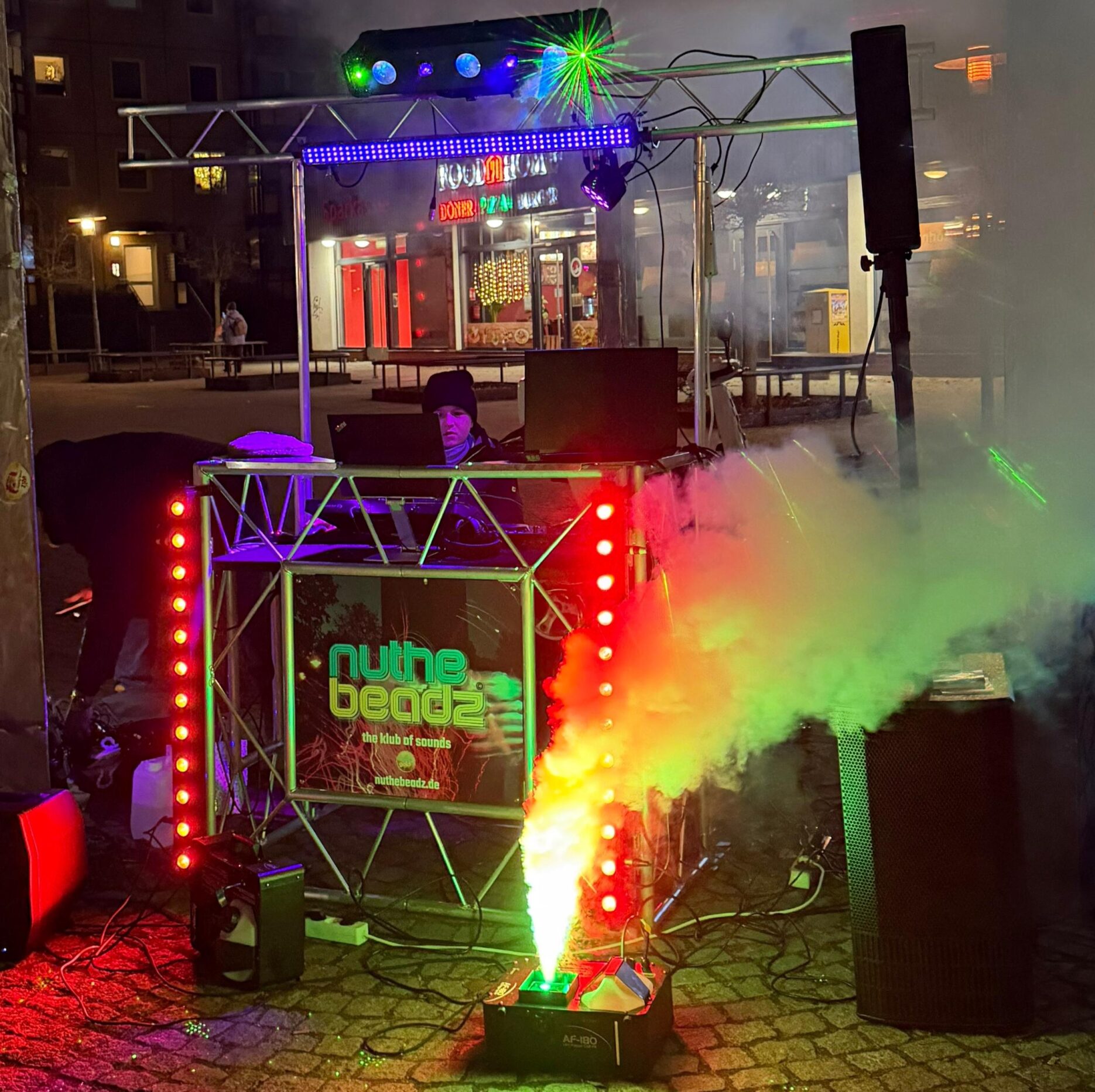 Komplett einsatzfähiger DJ Stand mit Lichtanlage.
